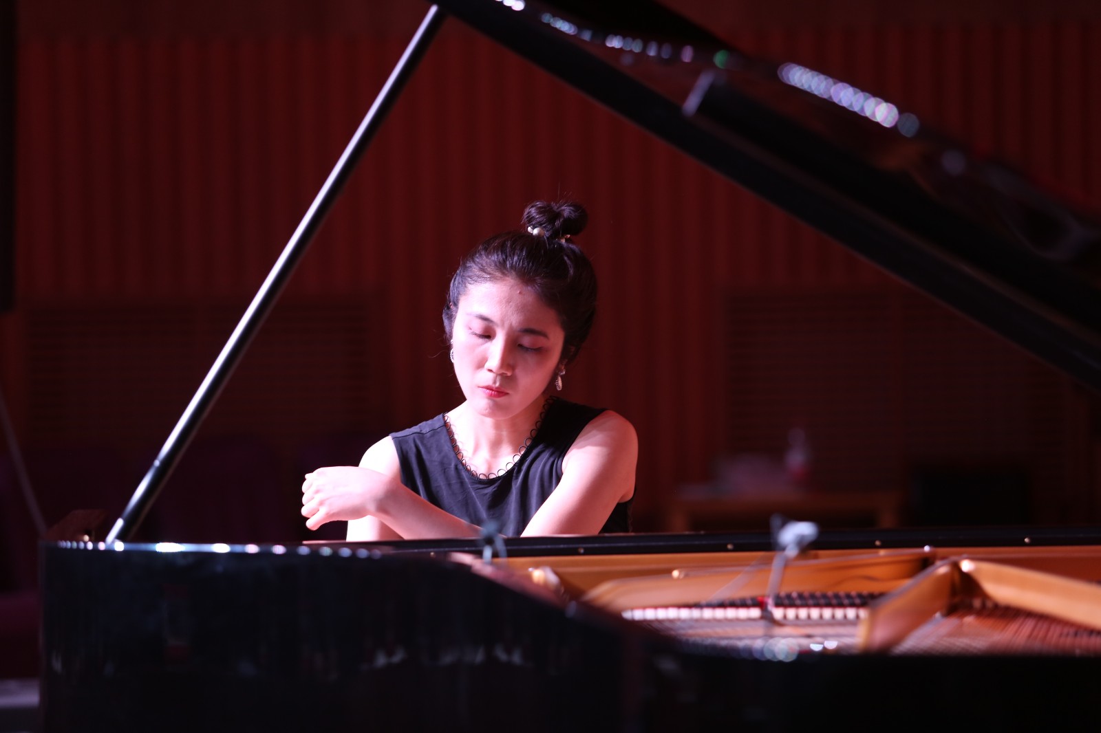 音乐会以巴赫的C大调前奏曲开场,雍茜用精彩的演奏营造出宁静与神圣的气氛,让现场听众仿佛沐浴在阳光下,沉浸其中。上半场的主题为西方古典音乐。雍茜老师以时间纵轴为线索,先后演奏了巴赫、海顿、肖邦这三位不同时期音乐家的代表作品。第一首是巴赫的《意大利协奏曲》,最初为羽管键琴而作,雍茜通过生动的演奏还原了羽管键琴的演奏特点,独奏与齐奏的音响层次对比鲜明,富有活力。第二首是海顿的《C大调钢琴奏鸣曲》,雍茜的演奏完美呈现了该曲快板乐章早期钢琴细致而丰富的音色,生机勃勃,极具幽默感,以及慢板乐章旋律优美,富有细腻的情感变化。第三首是肖邦的《F小调叙事曲》,雍茜演奏的这首作品细致入微的刻画了作曲家复杂的心境和强烈的情感波折,向观众分享了肖邦对于生命的深刻感悟。
